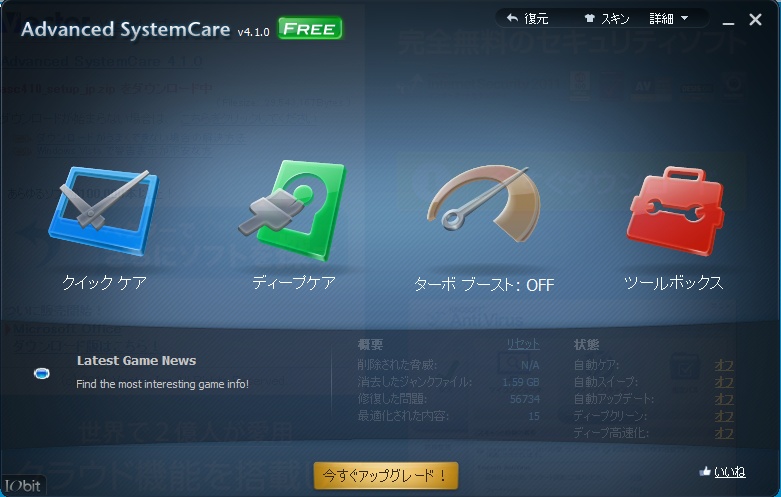 フリーソフトのiobitというものを検索すればすぐにヒットしますので、このソフトをダウンロードし、インストールしていきます。
