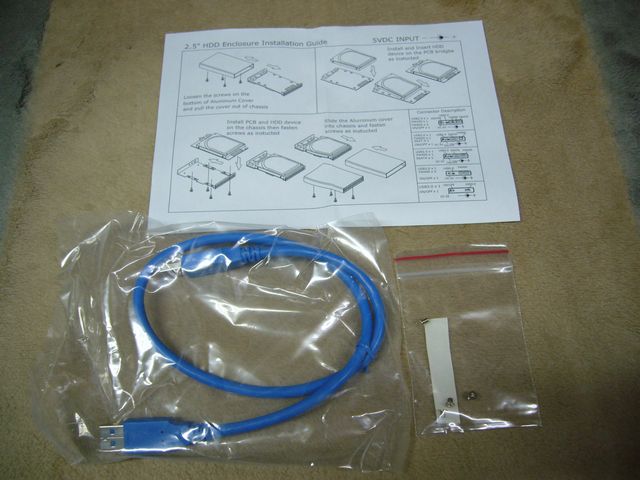 上記のデジカメ写真が、簡単な説明書と、接続用ケーブルと、ネジ一式になります。小さなネジですので、それ専用のドライバーが付属することも多いのですが、今回のは日本製のようにドライバー入っていないタイプになります。